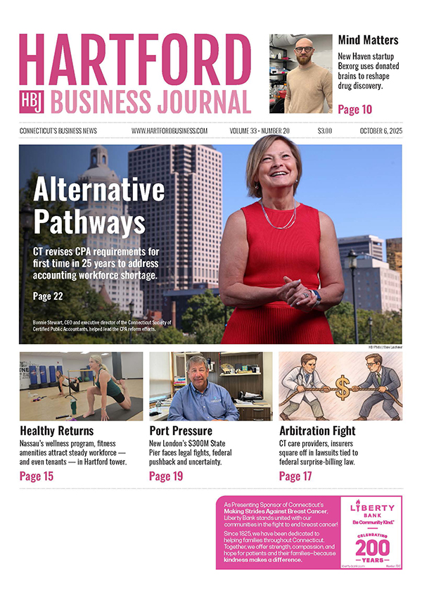 CTCPA Executive Director and CEO Bonnie Stewart was featured on the cover of the Hartford Business Journal on October 6, 2025, for the article “CT revises CPA requirements for the first time in 25 years to address accounting workforce shortage.” The article covered the regulatory changes that were officially effective October 1.